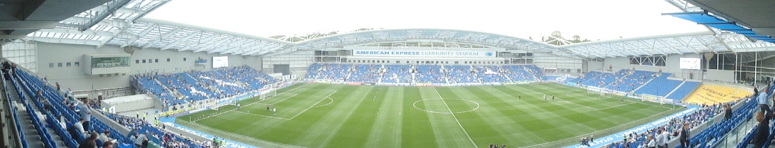 The photo above is a panoramic view of the new American Express Community Stadium at Falmer taken from the 1901 Club section in the main West Stand. Many more photos and my personal guide to the new stadium will follow shortly.